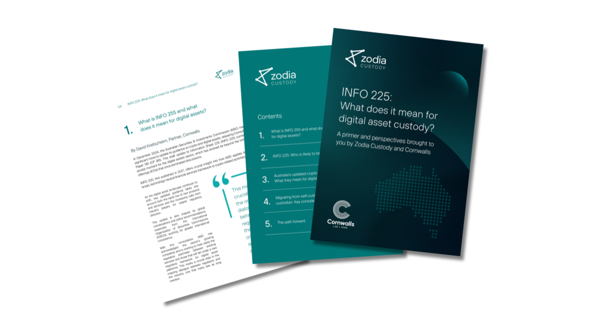 A primer and perspectives brought to you by Zodia Custody in association with Cornwalls, our latest report unpacks the critical implications of Australia’s proposed INFO 225 regulation and what it means for the future of digital asset custody