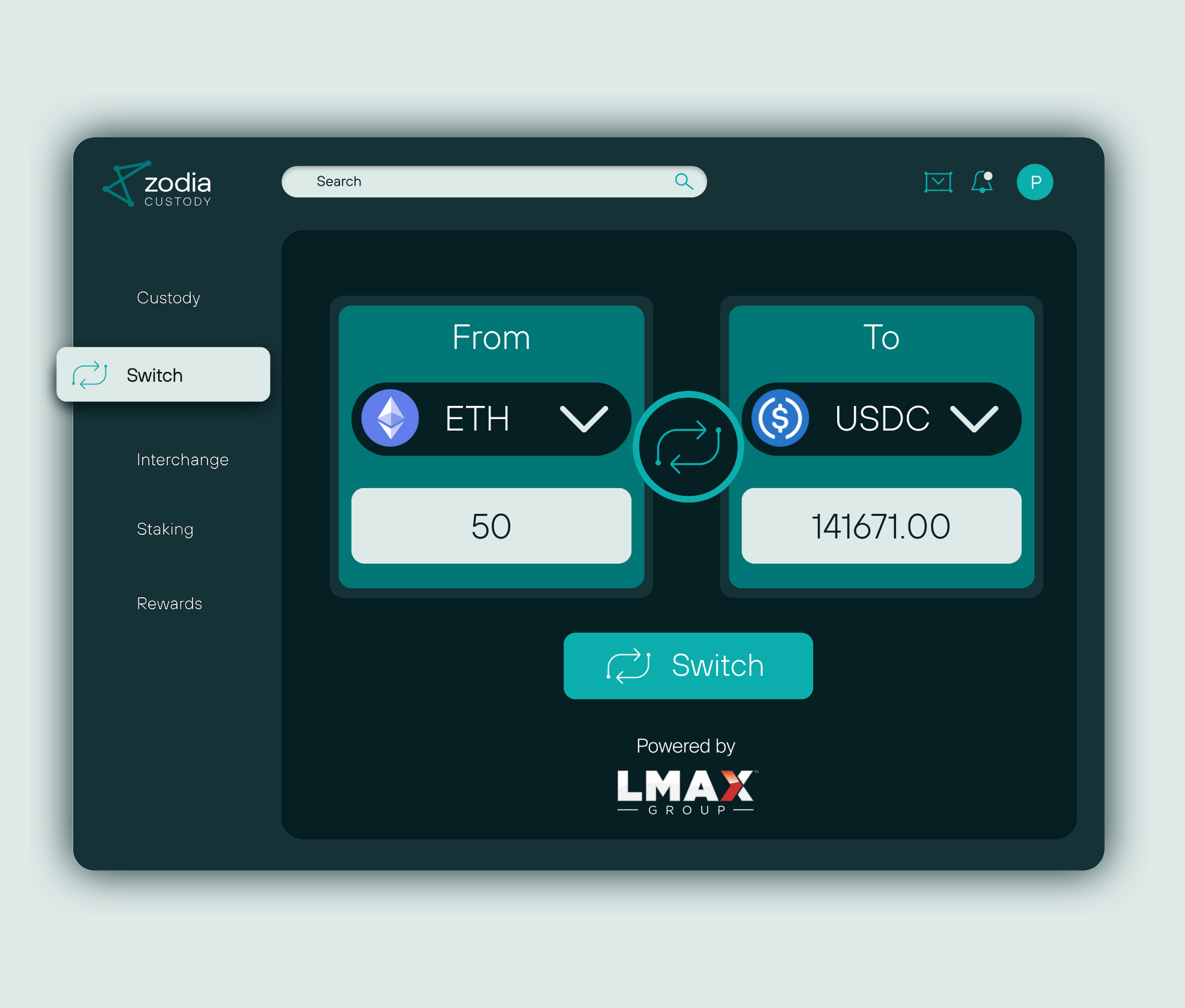 Switch enables institutions to initiate asset-to-asset swaps directly from their Zodia Custody environment using a smart-contract model.
